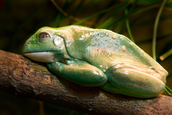 Fun Fact: These frogs almost never touch the ground. They spend their lives in the tops of trees. Their sticky toes help them hold on to leaves and branches. They can hang from a branch by one toe.
